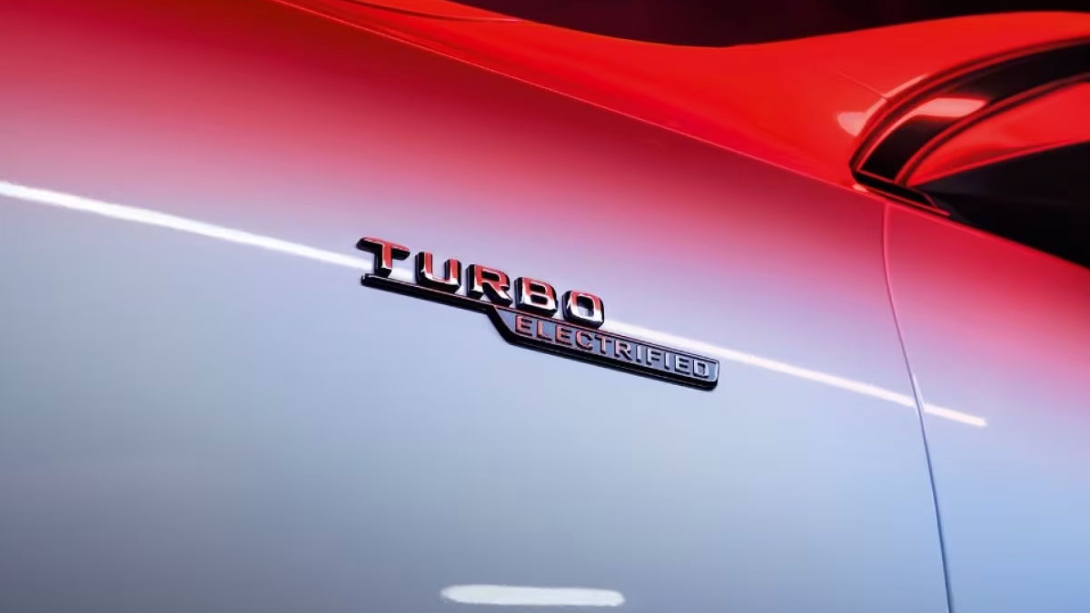 Huy hiệu TURBO ELECTRIFIED ở vè xe phía trước