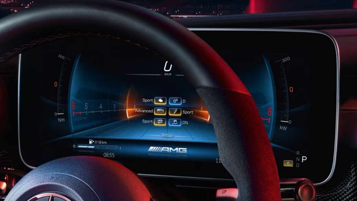 Cụm đồng hồ taplo đặc trưng AMG: Cụm đồng hồ taplo với khả năng cá nhân hóa các kiểu hiển thị khác nhau – giao diện đặc trưng của AMG cùng các tùy chọn góc nhìn linh hoạt mang đến trải nghiệm lái tập trung tối đa cho bạn.