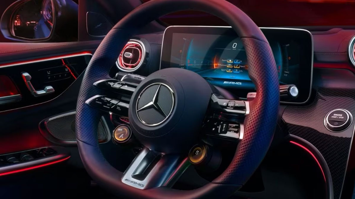 Tay lái AMG Performance: Tay lái AMG Performance được lấy cảm hứng từ thiết kế phẳng đặc trưng của tay lái xe đua thể thao. Các nút chạm điều khiển cảm ứng công thái học đem đến sự tiện nghi tối đa cho mọi nhu cầu sử dụng.