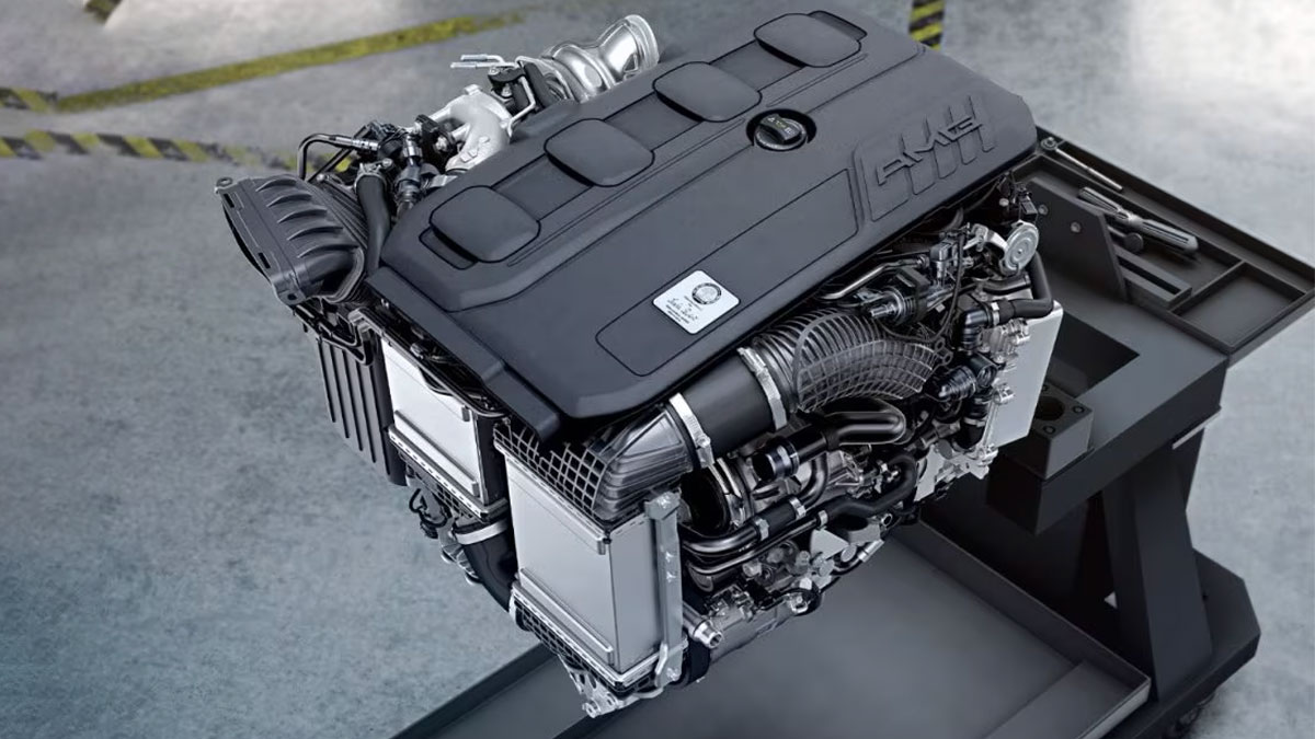 Động cơ 4 xi-lanh 2.0 lít: Động cơ bốn xi-lanh 2.0 lít M139 của Mercedes-AMG được thiết kế theo triết lý “One man, One engine”. Động cơ này được bổ trợ bởi công nghệ mild-hybrid 48V tích hợp máy phát & công nghệ tăng áp điện áp dụng từ các mẫu xe Công thức 1 cho công suất lên đến 300kW và mô men xoắn lên đến 500Nm.